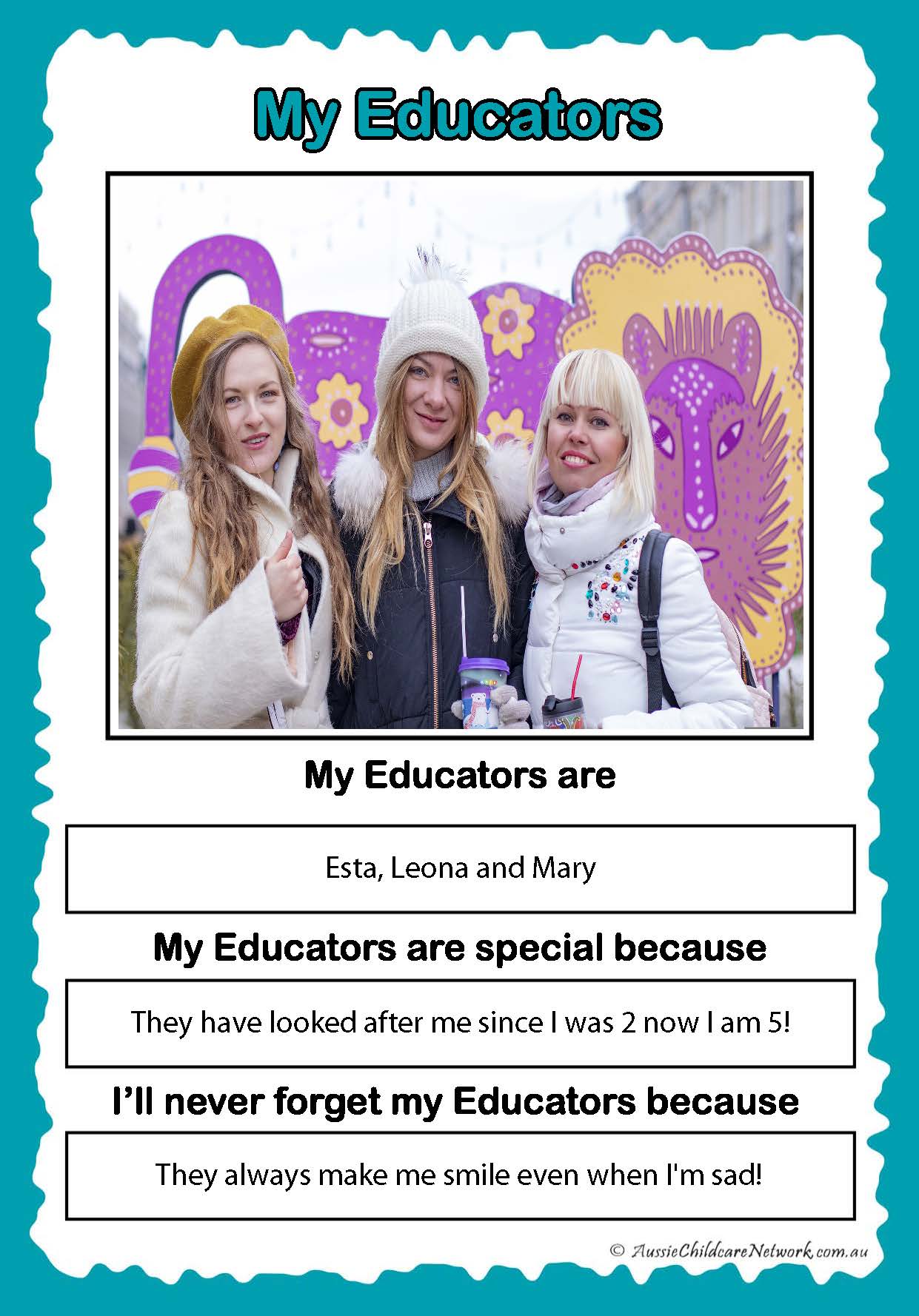 - My Educators Page—A space to honour the relationships built with educators, including photos and messages.