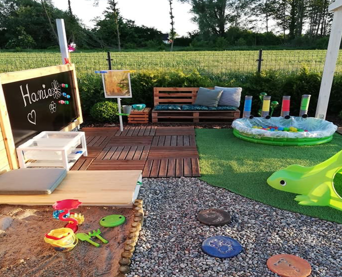- Mini Gardens: Raised beds or pots with herbs and flowers let toddlers smell, touch, and water plants.