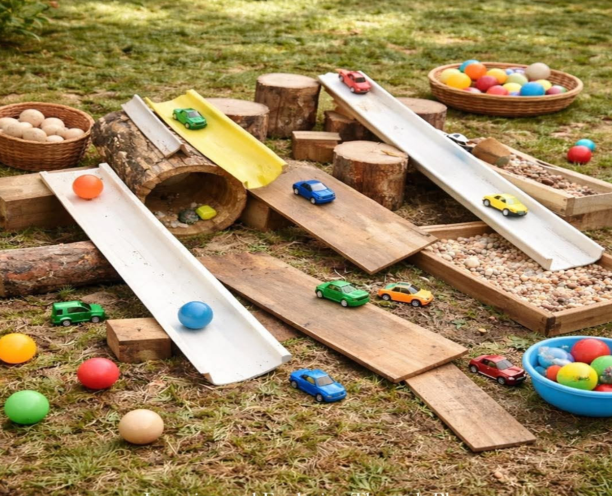 - Outdoor Music Wall: Hang pots, pans, and safe instruments for sound exploration.