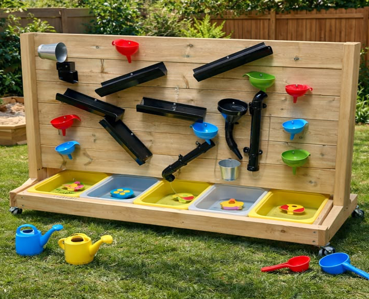 - Water Play: Shallow basins, splash mats, or gentle fountains encourage tactile discovery.