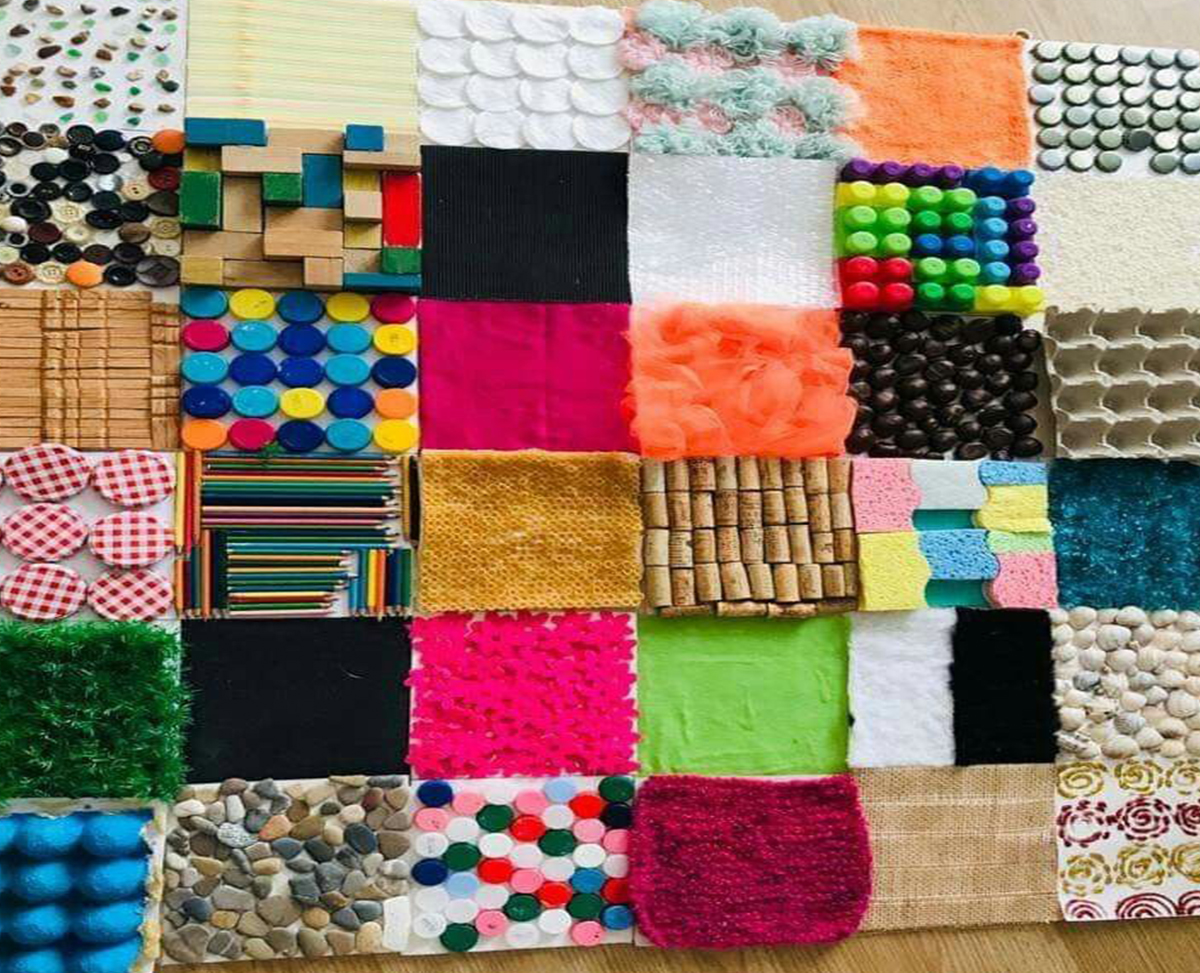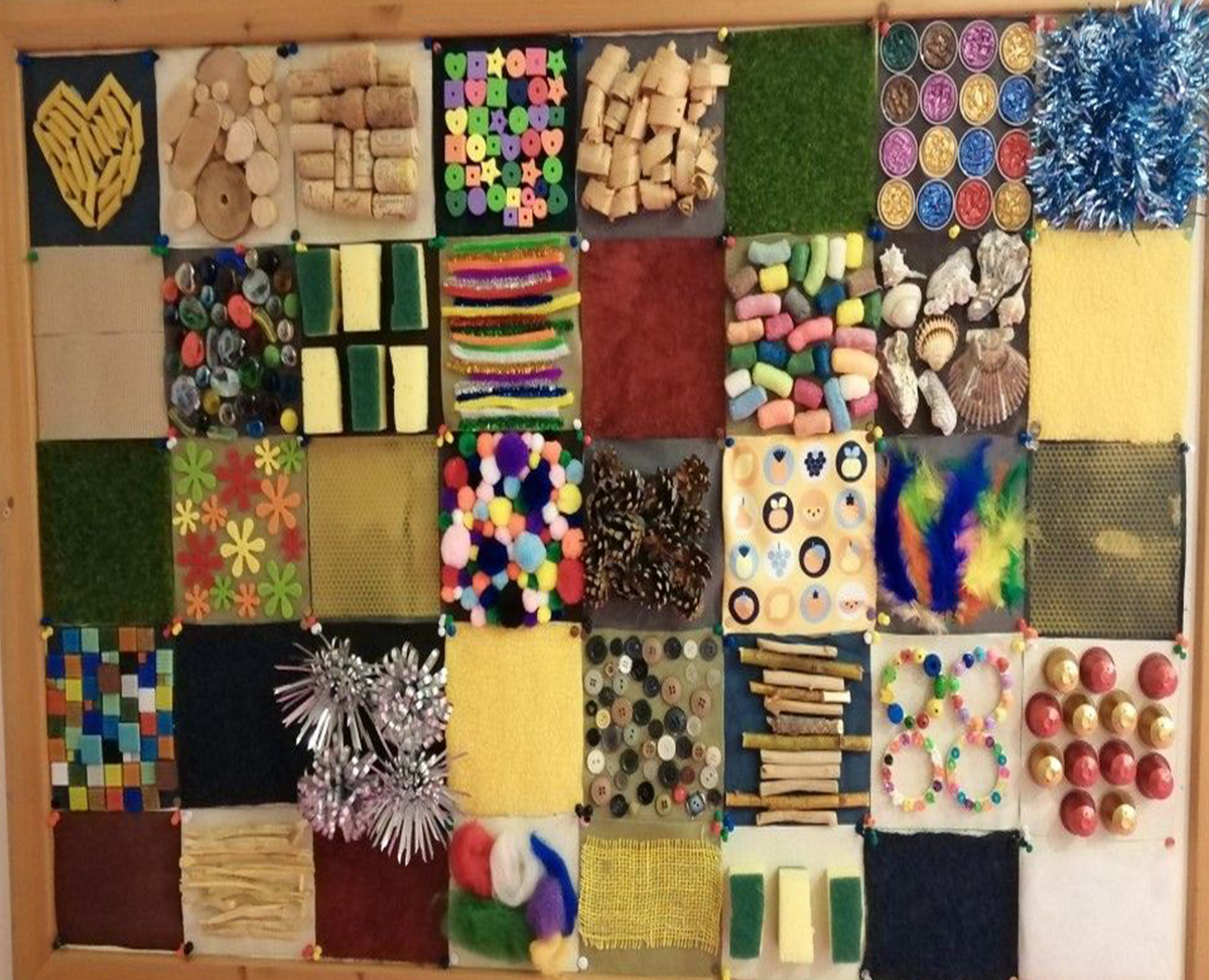 | Touch | Sandpaper, fabric swatches, beads | Builds tactile awareness |