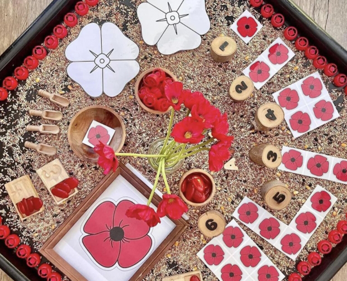 Poppy Counting Mats - Poppy Counting Mats enable children to add the correct number of poppies corresponding to the number on each set by adding them to the grid. This helps children with identifying numbers and supports number recognition and one-to-one correspondence.