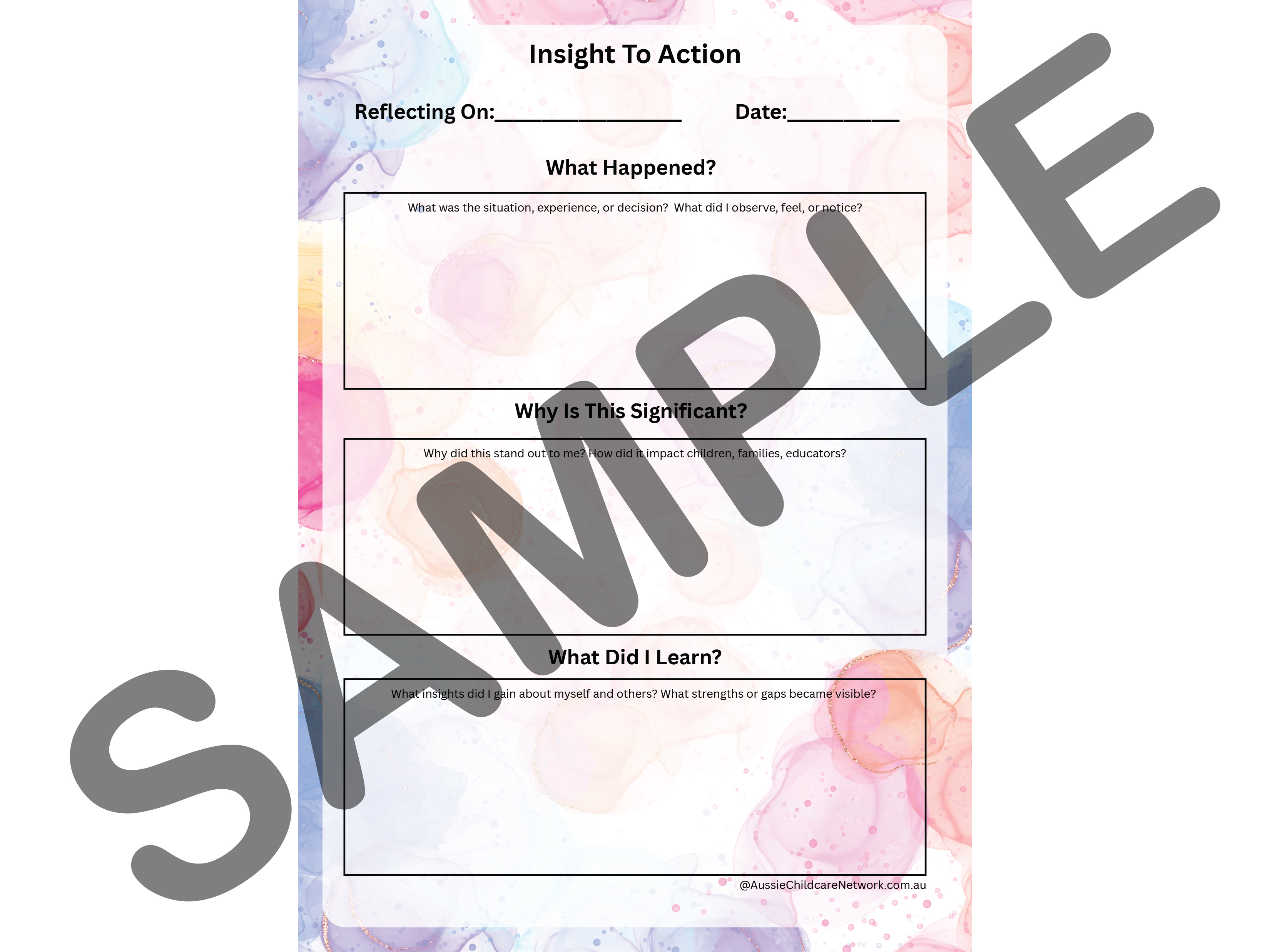 The Insight To Action template offers a gentle yet structured scaffold for thinking deeply, learning from experience, and translating insight into meaningful action.